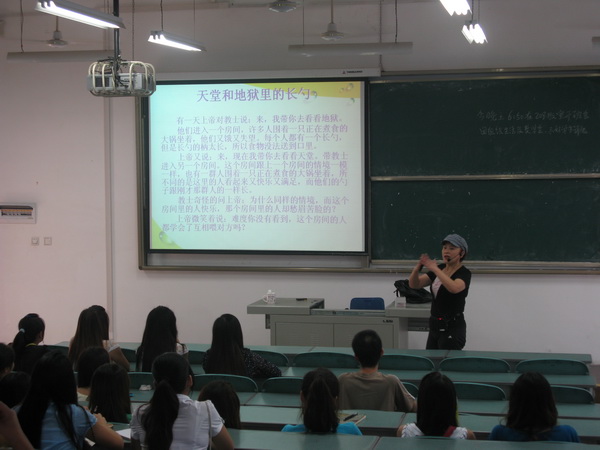 图片一:《人际交往与人际沟通》课上,夏兰副教授结合实际案例与学生讲解讨论人际关系知识。