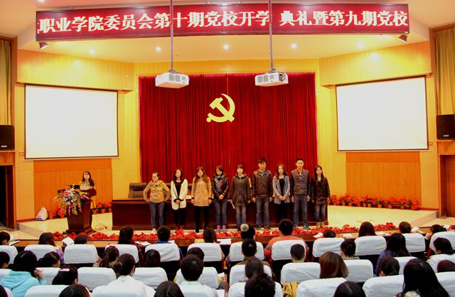 11月19日晚,中共四川华新现代职业学院委员党校第十期培训班开学典礼暨第九期党校“优秀学员”表彰典礼在我院学术报告厅隆重举行开学典礼,学院康敏副院长、四川广播电视大学培训学院副院长陶军副教授、学院思想政治教育处处长助理何敏副教授、学院学生处处长助理杨敏老师、学院思政处教师以及第十期全体604名党校学员参加了此次开学典礼。本期党校培训共开设两个教学班。