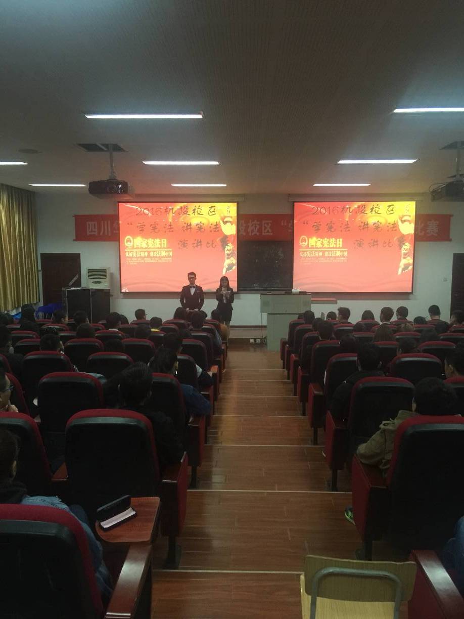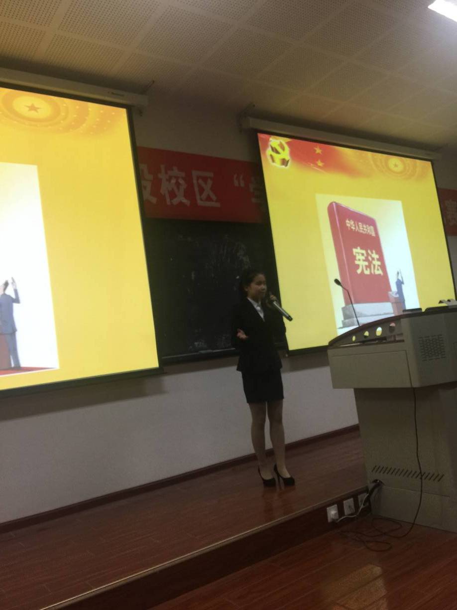 本次比赛以“学宪法 讲宪法”为主题,旨在全面深入推动我院“法律进学校”活动,广泛深入地开展宪法教育,使学生能深入了解宪法、尊崇宪法,弘扬宪法精神,增强法治观念。赛场上,选手们有的幽默诙谐,有的成熟稳重,有的激情昂扬,每位学生都通过这次比赛展现了自己较强的语言表达能力和各具特色的人格魅力。演讲中高潮迭起,无不引起观众的强烈共鸣。本次比赛经过两校区宿管会干部、干事们的精心布置与准备,进行得十分顺利,观众热情,评委认真,气氛融洽,“猜歌名”的互动环节更是为比赛增添了不少色彩。机投校区2015级会计专业史自杰同学取得第一名,西河校区15级广告专业张川庆同学荣获一等奖,李昱瑾、尹镜如两位老师获得优秀指导教师奖。