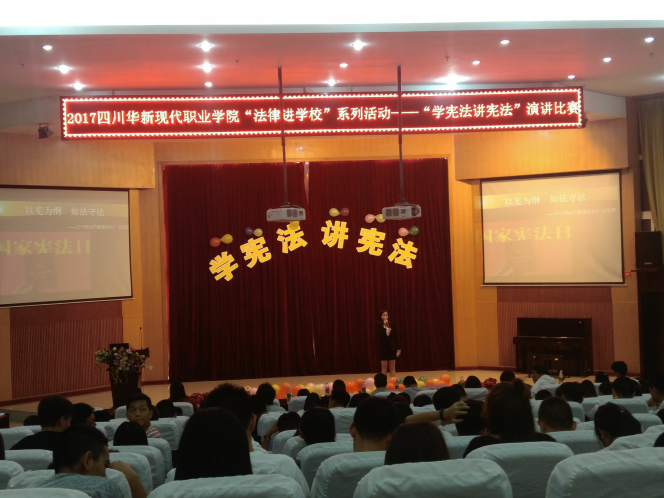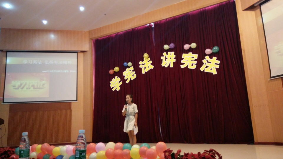 青春如歌,热情似火,知识作伴显蓬勃朝气,学法用法,自律自强,法律护航谱写美丽人生。这是青春飞扬的季节,更是依法治国的时代。古人云:“国不可无法,有法而不善者与无法等”。为增强学生的法制观念,使学生深入了解宪法、尊崇宪法,弘扬宪法精神,2017年9月12日晚18点,我院“学宪法讲宪法”主题演讲比赛在学术厅举行。学生处处长邓忠、艺术系学工秘书张舒雅出席活动。