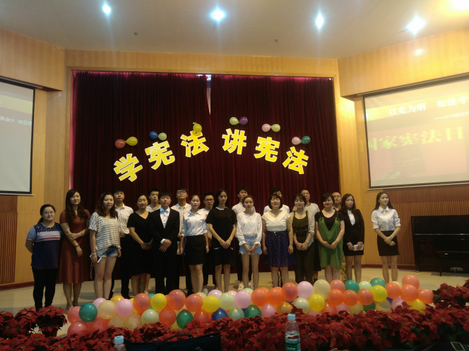 来自七个院、系的12名选手参加了此次演讲比赛。参赛选手紧扣主题,或从法理,或从历史等不同角度,阐释了宪法的权威性、原则性,结合培育和践行社会主义核心价值观,结合日常生活特别是大学校园生活,通过宪法故事等形式,分析了学宪法、讲宪法对大学生成长进步的重大作用,表达了从自身做起,从日常小事做起,树立宪法意识,培育宪法精神,遵守以宪法为核心的法律法规,做遵纪守法的好公民和社会主义合格大学生的心声。他们自信沉着、激进昂扬的发言博得了台下阵阵掌声。 本次比赛,还穿插了听音乐,猜歌名的互动环节,让现场的观众也参与其中。