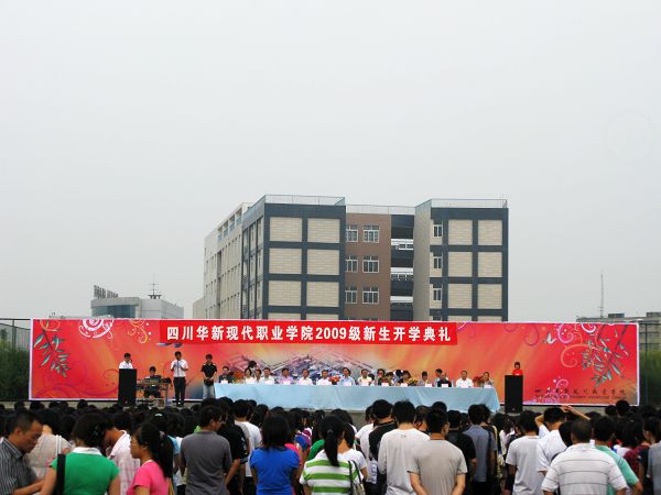 金秋送爽喜迎八方学子,丹桂飘香迎接美好明天!2009831日, 四川华新现代职业学院 “2009级新生开学典礼”在塑胶田径运动场隆重举行。学院党委书记赵邦友,院长李建川,党委副书记唐明建,副院长刘斌,学院艺术教育特别顾问马一平教授,以及各部门主要负责人和各系主任、辅导员老师等相关人员出席了开学典礼。