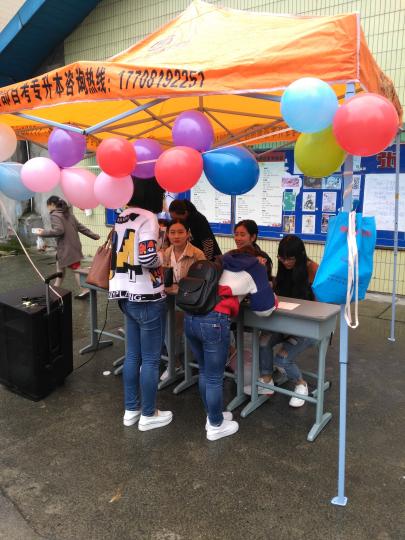 我院心理部10月10日在西河校区老食堂门口和机投校区实训楼下分别举行了书信传递爱活动。前期心理部制作、绘画了相关活动海报并在校园内进行了粘贴。活动当天下着小雨,但是同学们参与活动的热情并未减少。心理部成员全天在此守候,一共收到了百余封信件。届时心理部将把所收到的校内信件一一送到收信人手中,而校外信件将以邮寄的方式送达。