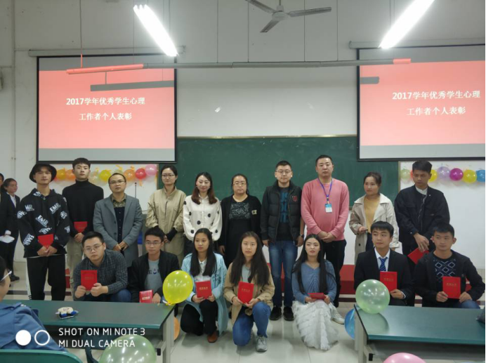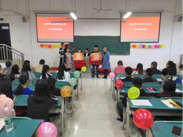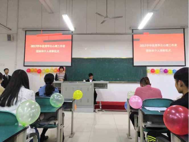 2018年11月30日下午5:00,我院“2017学年心理优秀工作团体和心理优秀工作者个人表彰暨2018级心理工作者培训开班仪式”在实训楼101教室成功举办。学生处处长邓忠老师、学生处副处长兼心理中心主任陈蒂丝老师、心理中心陈越老师和各学院老师、获奖团体和个人学生代表以及一百多名2018级学生心理工作者参加了这次表彰仪式。