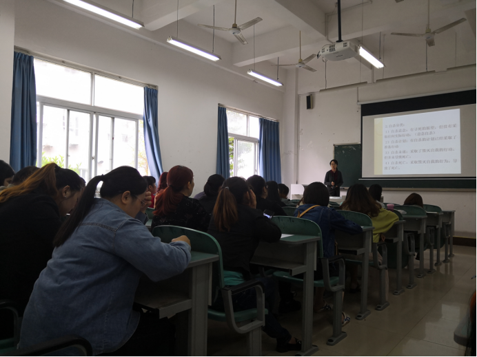 2019年4月底,四川省高校心理健康教育中心主任会议在都江堰举行,会议邀请中南大学临床心理学博士唐海波教授就“危机干预中的自杀识别”进行了专题培训。我校学生处副处长、心理健康中心主任陈蒂丝参加了本次会议,收获颇丰。5月5日下午2点,学生处心理健康中心组织全院40余位辅导员老师和宿管老师在教学楼104进行了培训分享会。