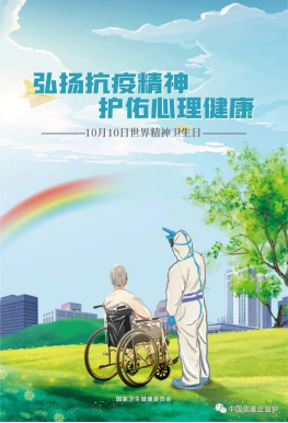 10月10日是第29个世界精神卫生日,今年的活动主题为:“弘扬抗疫精神,护佑心理健康”。今年伊始,面对突如其来的新冠肺炎疫情,精神卫生和心理健康工作者第一时间行动起来,把心理疏导和心理干预作为稳民生、稳人心、稳社会的重要举措,对新冠肺炎感染者、被隔离者、一线医务工作者和公众等各类人群开展心理疏导、心理干预等心理服务,为抗击疫情、共克时艰起到了积极作用。我院心理健康中心的老师也参加了全国、全省组织的新冠心理援助服务,发挥了积极的作用。
