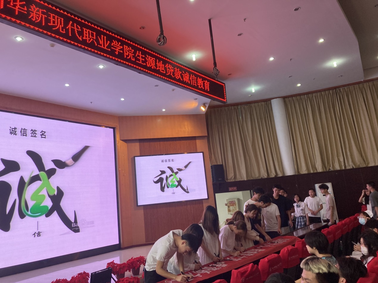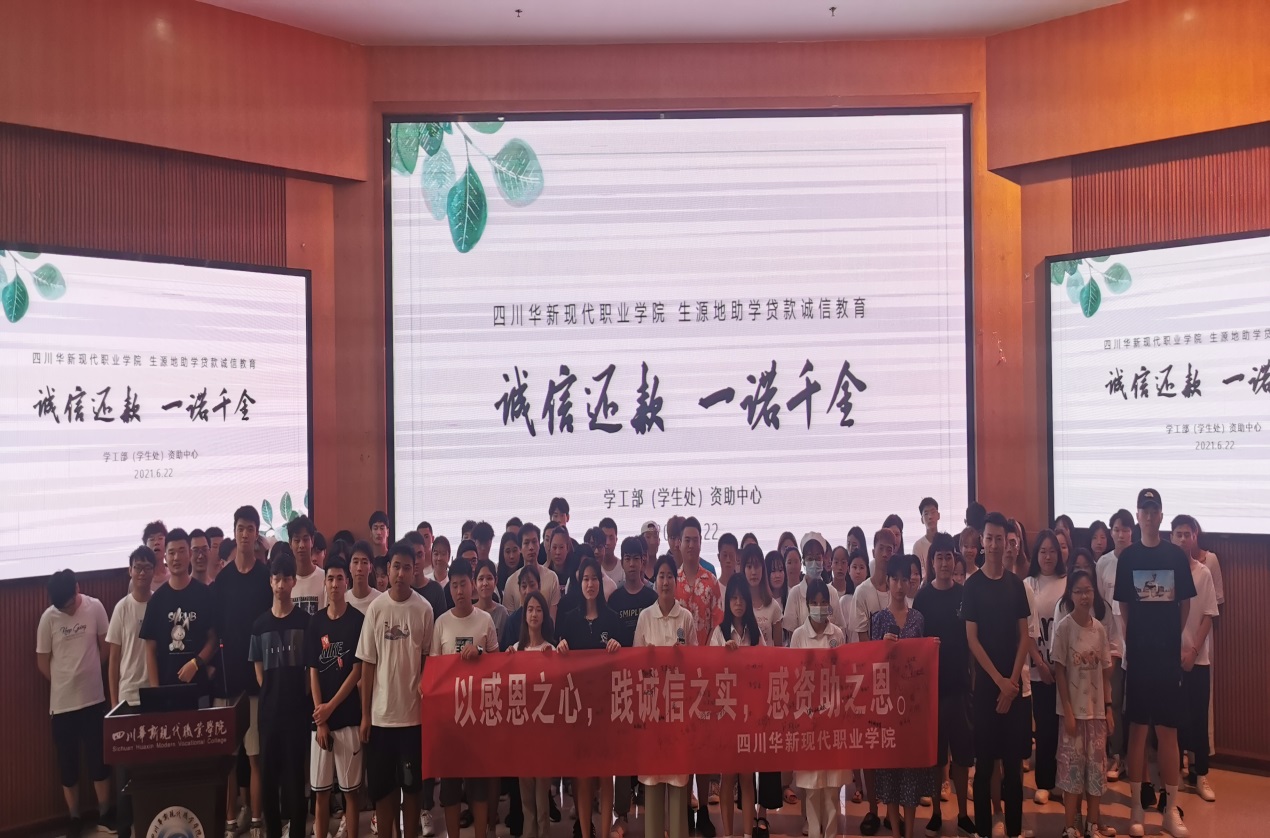 2021年6月23日,我院在学术报告厅开展了“诚信还贷,一诺千金”生源地贷款诚信教育活动。活动由学院资助中心的覃莉莉老师主持。