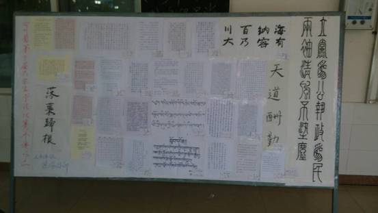9月23日,我院学生会学习部开展了四川省第十届大学生书法大赛的参赛作品展示活动。本次展示活动不仅为每个参赛作品制作了精美的小标签。此次参加书法比赛作品展示的作品共有30余幅。其中,有硬笔25幅,软笔4幅,少数民族文字2幅。其中也包含被我院推选送至四川省第十届大学生书法参赛作品14。;在展示的过程中,有不少同学对作品赞不决口,表现出他们对书法者的敬佩之情。