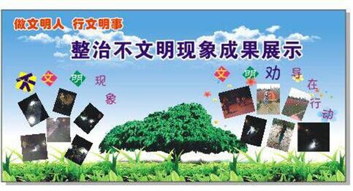 5月18日,在展板上对不文明行为和文明行为进行了成果展示的对比。进一步让同学们意识到了哪些行为是不文明的,哪些行为是文明的。