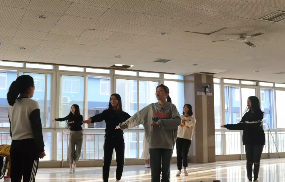 从十月初起女孩们每天下午都聚集在中快餐食堂三楼紧张排练,同时指导老师也是准时出现在排练室督促,每个动作她们都竭力做到最好。