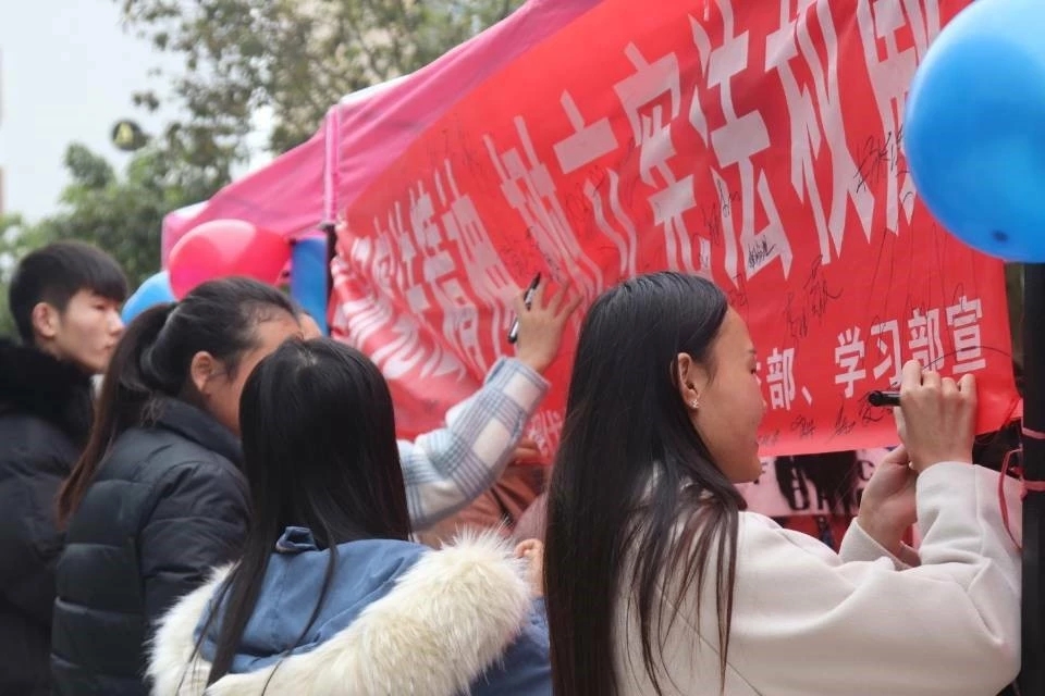 12月4日,由院学生会权益部和学习部主办的“宪法宣传”活动如火如荼的进行着。此次活动以“尊崇宪法、学习宪法、遵守宪法、维护宪法、运用宪法”为主题。
