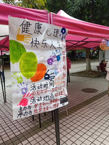 一年一度的10月10日精神卫生日已经到来,为了让同学们了解到更多的心理健康知识和能够让大家开心的度过每一天,2019年10月10日由四川华新现代职业技术学院学生会心理部和部分老师,联手创办了10月10日精神卫生日活动。