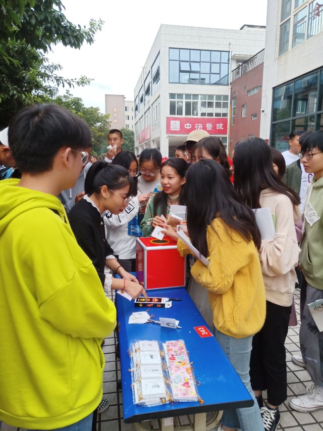 在这次的活动过程中同学们也都很积极参加,在我们精心设计的展板上写下了自己想说的话,想做的事,还有我们搞的一日一签活动,也有很多同学来抽取属于他们自己的祝福语,看着同学们欢声笑语的参加活动,我们大家也很有成就感。