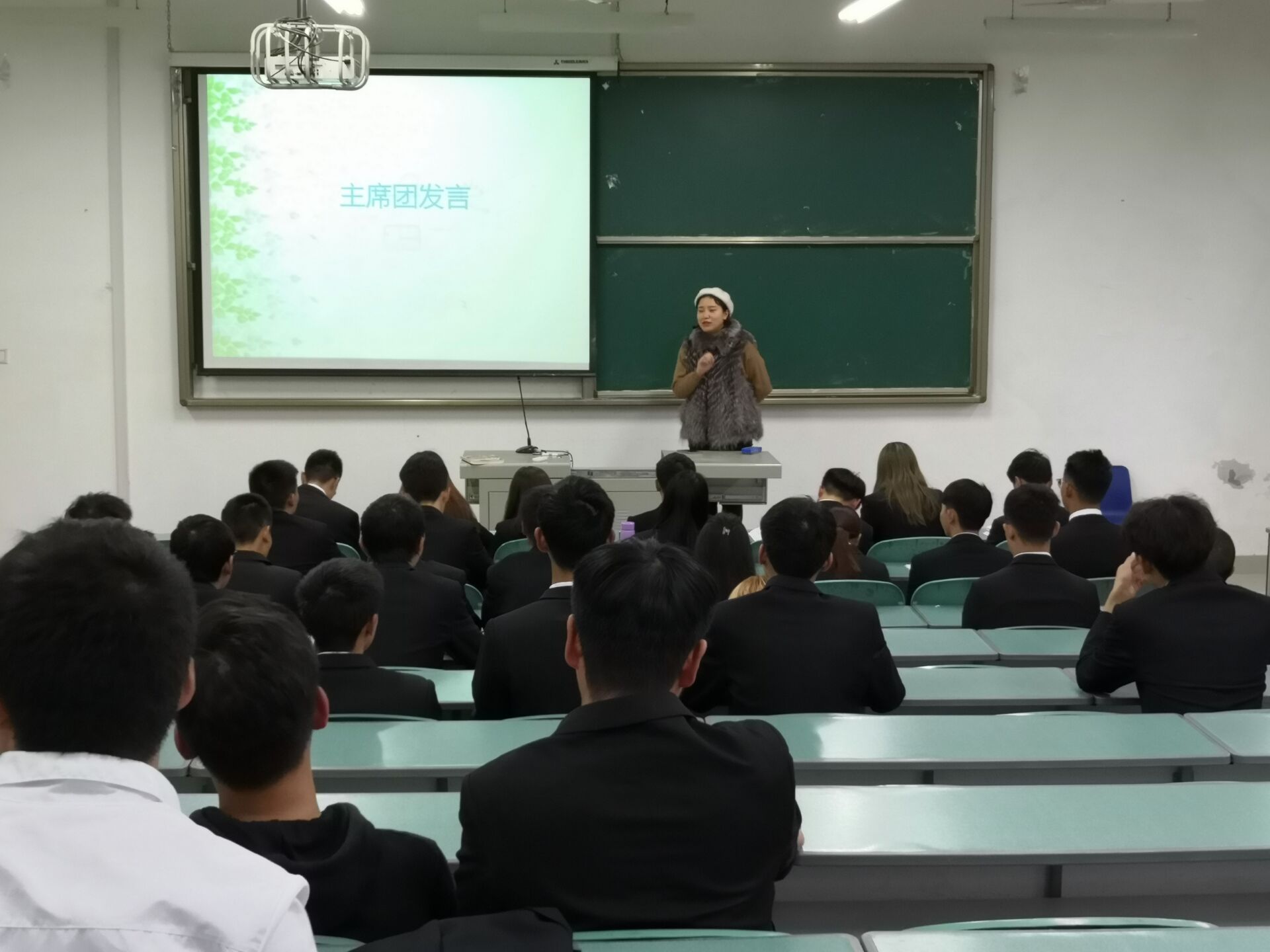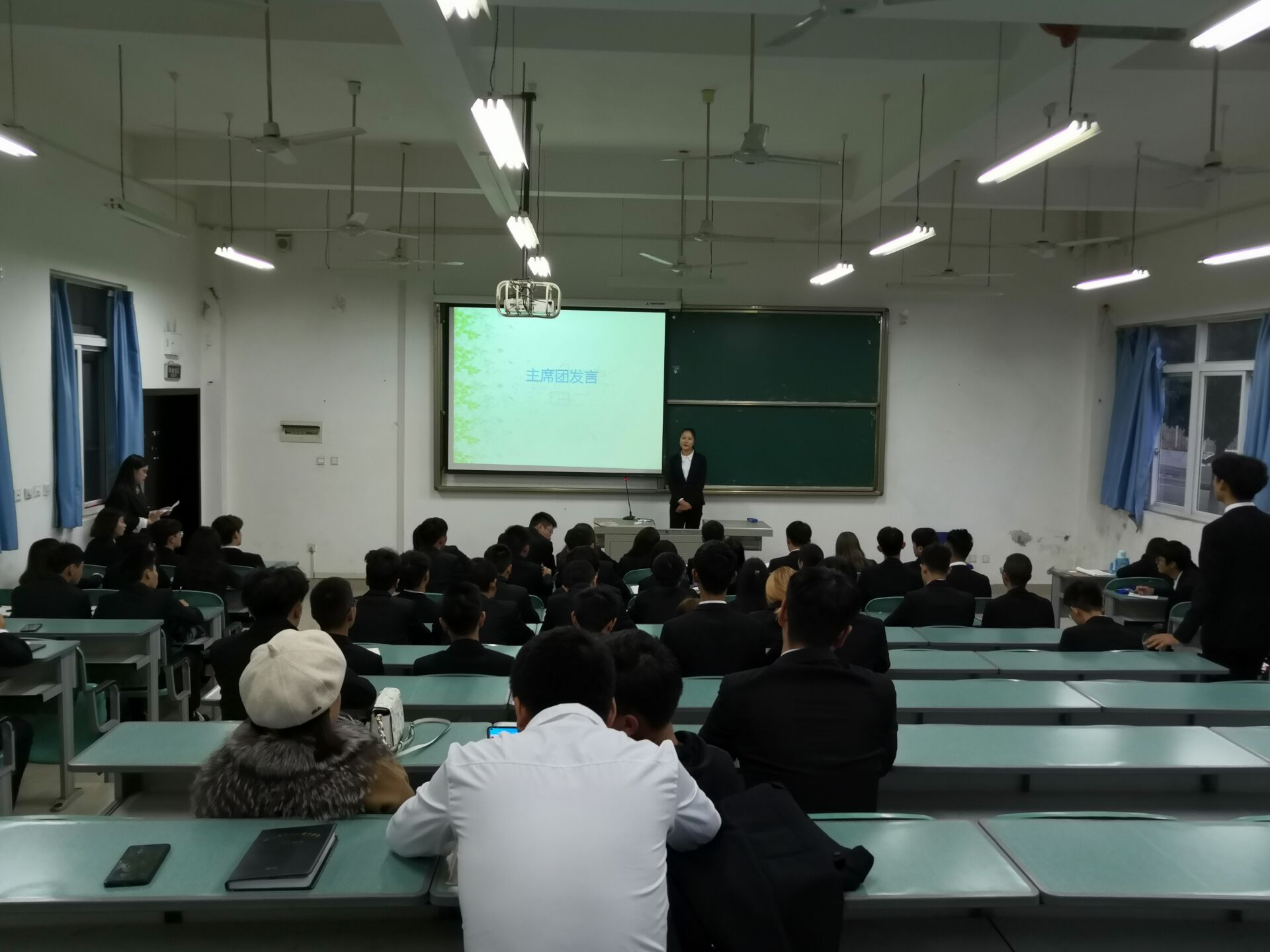 大会第二项,由主席团成员发言,主席主要强调了学生会成员的文明礼貌问题,秉持着为同学们服务的精神理念,以提高整个学生会干部队伍各成员的素质、加强各部门的交流和合作,积极营造学生会内部文化氛围,并要求学生会全体成员在以后的工作中以身作则,落实好每一项工作。