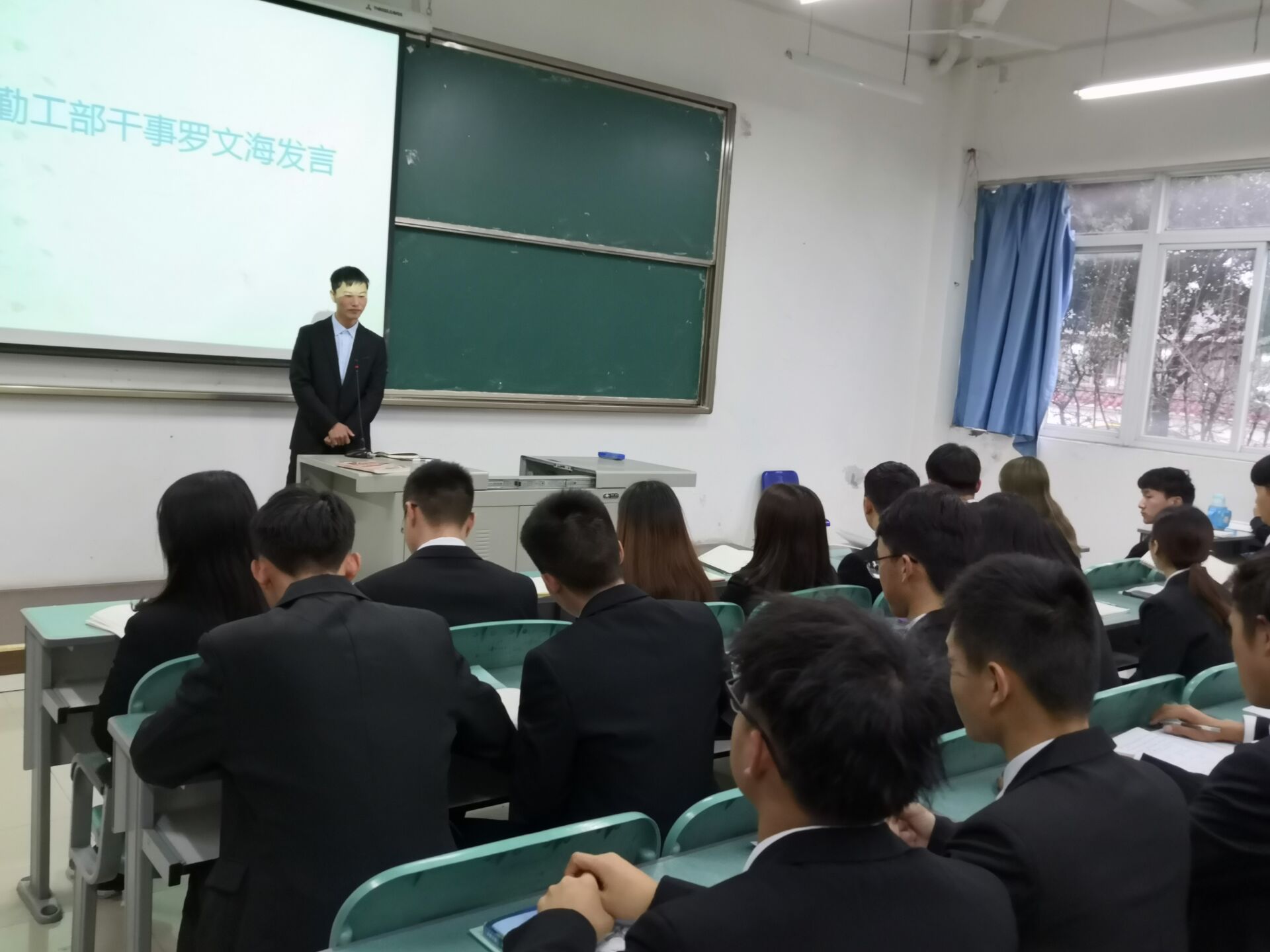 2、培养良好工作作风,切实实施工作安排,在学习和生活中继续发扬自律自强的精神,希望各位学生干部要做好本职工作。