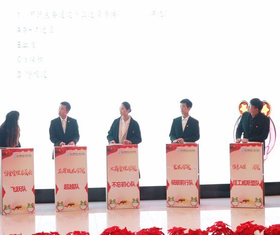 经过前两个环节的紧张比拼,我们等来了观众的互动,各位同学也是积极参与,全身心投入到与观众的互动中,稍息片刻后,也就进入了我们最后的三个环节,这三个环节也就是抢答环节,参赛选手们手速是一个比一个快,回答一个比一个精彩,在最后一轮的时侯,我们的嘉宾助力团也完全发挥了自己的作用,对于参赛者的求助也是有求必应,在一轮又一轮的拼比中,本次的比赛可谓是精彩绝伦。