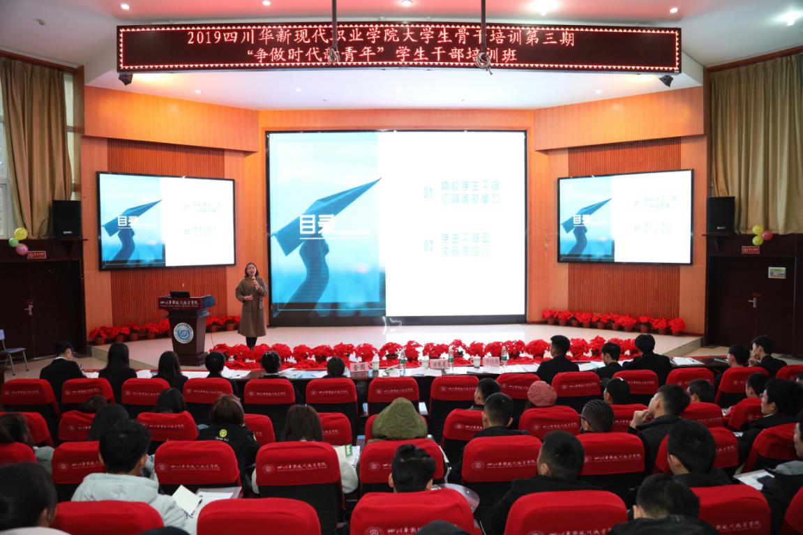 “争做时代新青年”是为了实现中华民族伟大复兴也是中华民族近代以来最伟大梦想的前提。旨在培养校级职能类能干部的新青年,使其成为正直可靠、作风过硬、能力出色、素质全面,具有社会责任感、全球视野和创新精神的高素质人才。干培训班于2019年12月7日在学术报告厅举行,参培对象为院学生会干部、国旗班干部、各二级学院学生会干部、班长等四百余人。