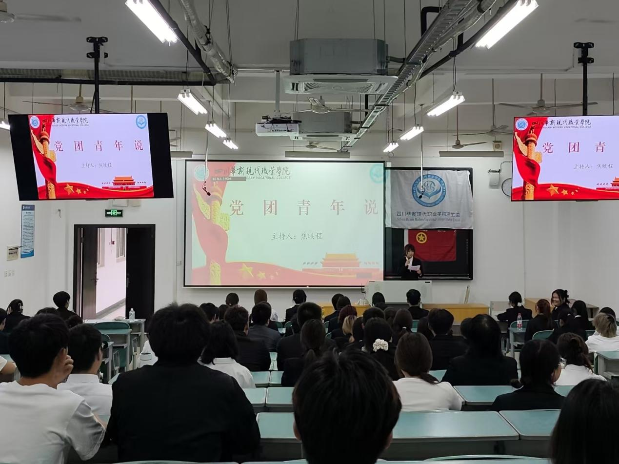 以党的先进理论为指引,以“党团青年说”为载体,四川华新现代职业学院校学生会于9月18日下午在博学楼107教室举办第十五期主题教育活动,着力增强党团青年的使命担当与责任自觉。本次活动由校级七大学生组织及各二级学院学生干部参加,校学生会综合事务部焦昳程同学主持。