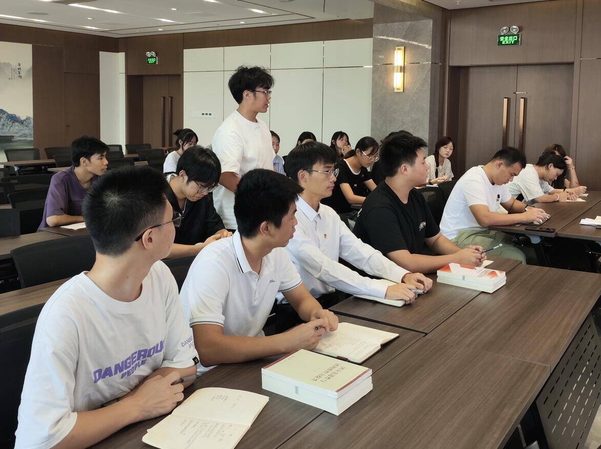 伍书记进行总结。她从“为何学”“学什么”“怎么学”三个层面对同学们的思想政治理论学习提出建议和要求。她谈到,思想政治素养是新时代大学生不可或缺的基本素养,加强思想理论学习是进一步坚定理想信念,提高精神境界的必要途径。同学们要与时代同向同行,把个人成长和国家发展、时代进步结合起来,真正做到以学铸魂。