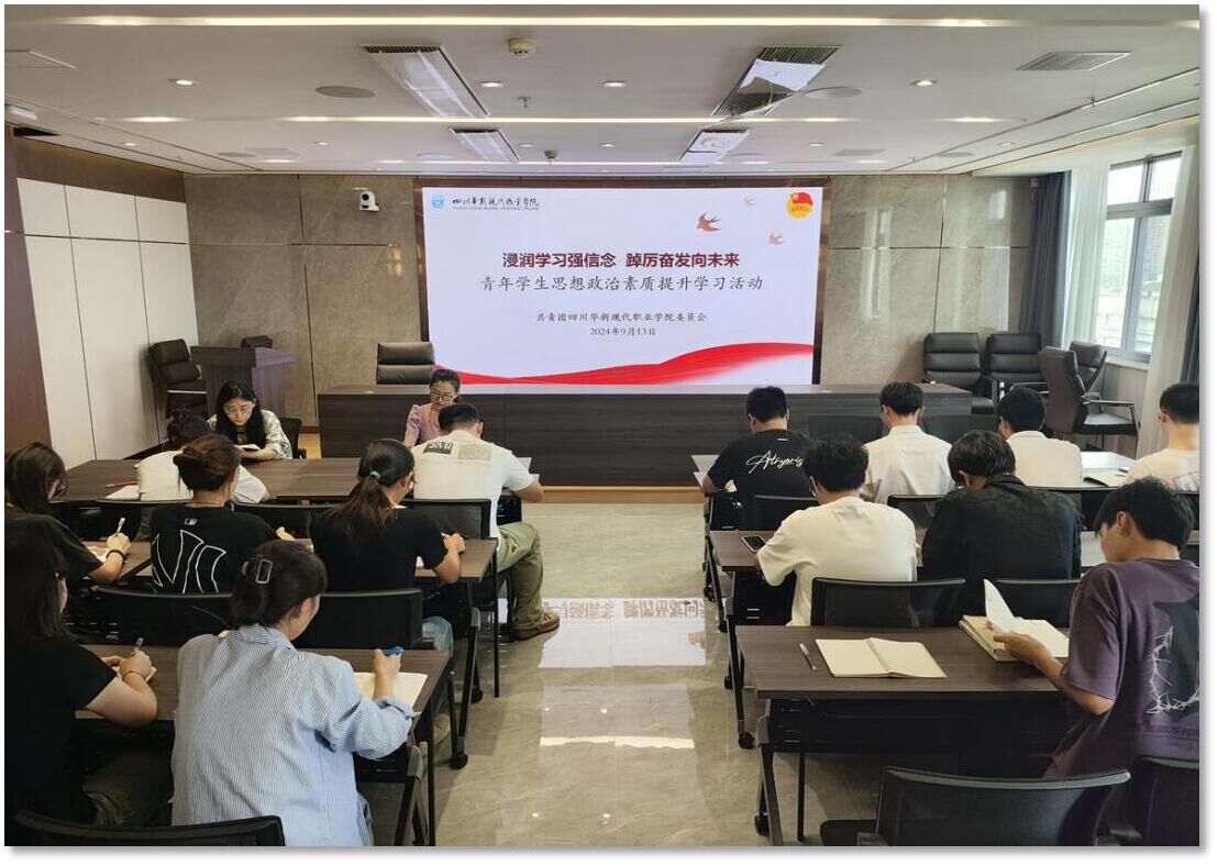 为贯彻落实《中共中央办公厅关于巩固拓展学习贯彻习近平新时代中国特色社会主义思想主题教育成果的意见》,进一步鼓励青年学生坚持读原著学原文悟原理,做习近平新时代中国特色社会主义思想的坚定信仰者和忠实实践者,以高度的责任心和使命感,引领更多团员青年听党话,跟党走。9月13日,院团委在明德楼602会议室开展2024年青年学生政治素质提升学习活动,会议由院团委刘畅老师主持,团委副书记伍凤姣、院团委学生团干与二级学院团总支部分学生团干参加。