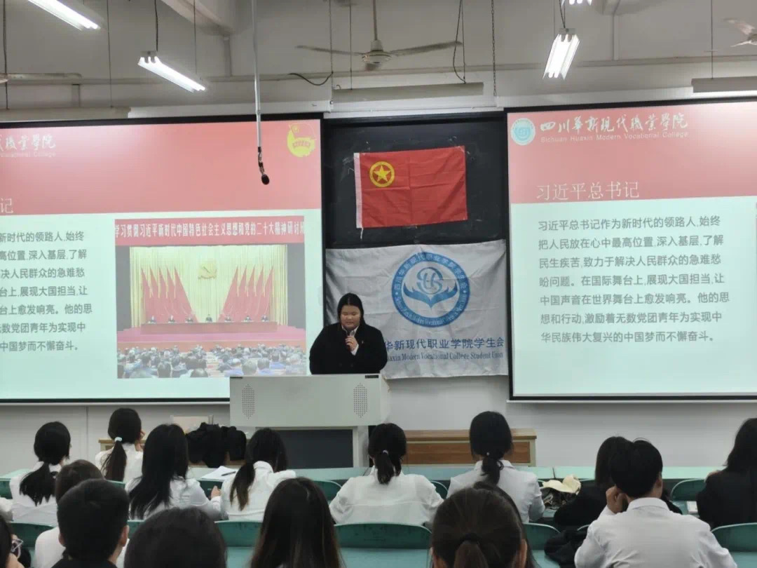 青春无边,奋斗以成。在新时代的征程中,广大青年以脚步丈量祖国大地,用眼睛发现中国精神,将对祖国的赤诚热爱与对人民的深厚情谊融入学业与事业的全过程。4月24日下午4:10,四川华新现代职业学院学生会于博学楼105教室精心策划并组织了“党团青年说”主题教育活动。此次活动汇聚了校级七大学生组织及各二级学院学生代表,活动由校学生会综合事务部曾昱茹同学主持。