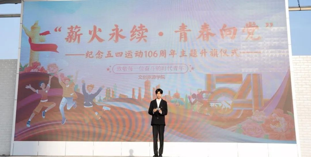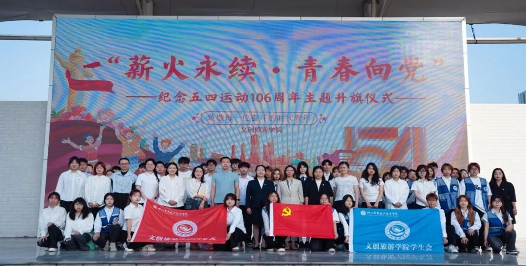 为弘扬五四精神,激励青年学子赓续红色血脉、勇担时代使命,2025年5月12日早上7:00,文创旅游学院隆重举行“薪火永续·青春向党”纪念五四运动106周年主题升旗仪式。华新职院工会主席、纪委书记邓忠、文创旅游学院党支部书记陈丽玉、副书记任勇军、副院长王娟、文创旅游学院在校师生及全体国旗护卫队成员共同参与活动,以庄严仪式致敬历史,激扬青春力量。