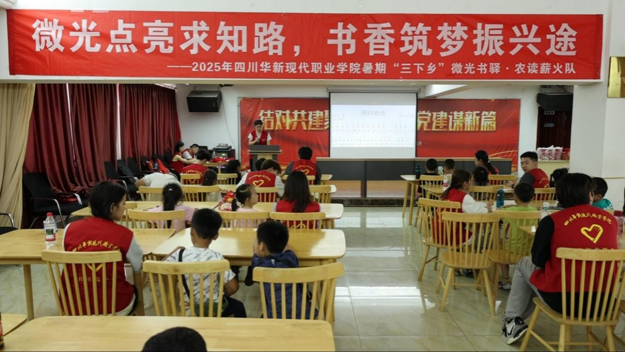 为深化文化育人、实践育人,培育纪律意识与家国情怀,丰富乡村儿童暑期生活,7月1日——5日,四川华新现代职业学院团委组织20余名大学生志愿者队伍在新津区花源镇农家书屋火热开展“微光点亮求知路·书香筑梦振兴途”大学生乡村阅读志愿服务活动。