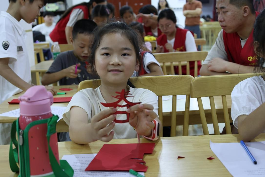在志愿者的精心组织下,书屋变身多彩课堂。活动期间,志愿者们每天上午面向孩子们开展主题阅读教学,课堂兼具趣味性与思想性。孩子们围坐聆听“小英雄雨来”等红色故事,先烈事迹让稚嫩面庞写满崇敬。每天下午的“剪纸里的中国”、“行走的思政课”、“小小村务官”、”田野研学”等特色实践课程安排同样精彩纷呈,孩子们让红纸在指尖化作精美窗花,让传统剪纸艺术焕发生机;用画笔深情描绘心中 “最可爱的人”;军体拳与队列训练中,一招一式虎虎生风,挺拔身姿尽显少年风貌;还有 “写家书” 环节,融入军人保家卫国的情怀,引导孩子们以书信感恩家人。这些活动如春风化雨,让红色基因、传统文化与纪律意识在孩子们心中生根发芽。