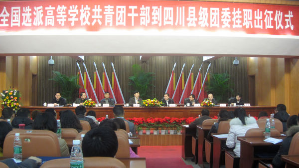 出征仪式上,团中央学校部副部长杜汇良、四川团省委书记张彤首先向来自省内的110名高校挂职团干部表示了热烈地欢迎,向深入一线奉献基层的省内高校挂职团干部的选择表示了崇高敬意,并给他们提出了希望和建议。