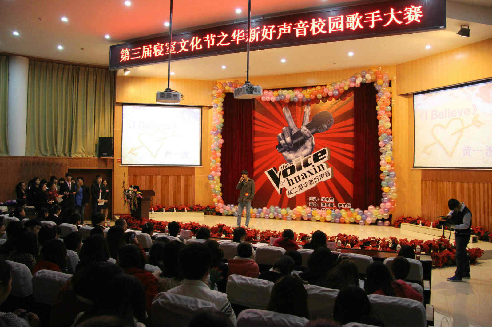 首先,在周传琦的《看我七十二变》的精彩演唱拉开了序幕,将当代大学生阳光的一面全部都展现了出来;接着朝气蓬勃、意气风发吉时石林《像风一样的自由》将活动带入高潮,现场的同学自觉地跟着节奏拍手。最后由“第一届华新好声音”的冠军得主岳斌演唱的浮夸,让现场观众在等待结果的同时跟着旋律唱起来。