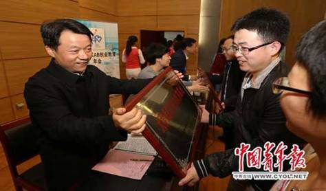 图一:团中央书记处书记傅振邦为获得KAB创业教育基地的学校授牌