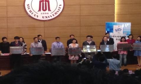 图二:联工组织为2015KAB创业优秀学校颁发证书