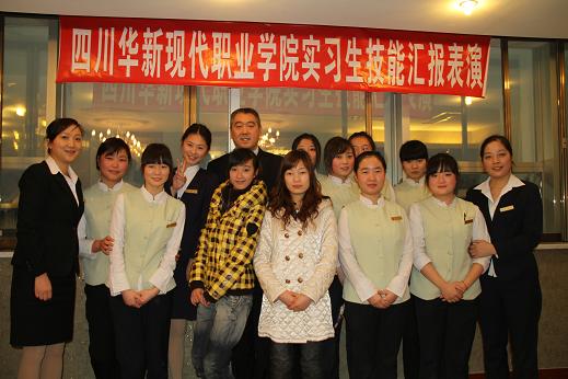 2011年1月7日下午3:30,我院旅游系09级酒店管理专业在四川绿洲大酒店参加短期顶岗实习的学生,在四川绿洲大酒店客房部的组织下,在酒店客房部行政楼层24楼举行了“四川华新职业学院实习生汇报表演”。