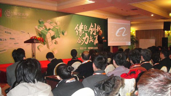 淘宝大学是由亚洲最大的购物网站淘宝网创办的专业网商培训中心,培训足迹已遍布全国40余座城市。其年会每年一届,是淘宝大学一年来所取得成就的总结和交流。在7日-8日年会论坛期间,大会组委会举办了多场丰富多彩的分论坛,为来宾整合打造一个线下交流沟通的平台。 “愿有多大,路有多长”;“网商如何撬动3000亿的市场——校园市场,电子商务下一个战场”;“我是网商,我缺人——网商团队的招募与选拔”;“排兵布阵,赢在2011——B2C 、C2C的抉择之路”,“剖析数据化运营店铺之道”,“佛法与人生”,“营销创新与变革”,“总裁突破企业发展瓶颈”, 课程内容包括数据平台、网络营销、类目运营、支付宝、数据化运营店铺、企业管理之道,场场座无虚席,会场上笑声不断,枯燥的专业知识变得很精彩,深深感受到淘宝给我们教学带来很多的新观念、新思路、新方法。