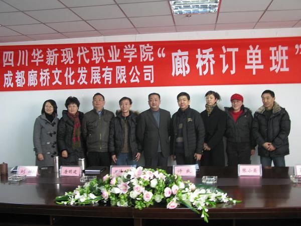 在热烈的掌声中,我院与成都廊桥文化发展有限公司签订了廊桥订单班合作协议。
