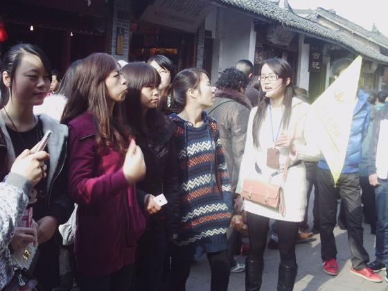 2011年3月8日上午风和日丽,我系09旅游专业同学一行49人前往洛带古镇进行旅游职业能力综合训练中模拟导游带团的实践。由该班杨丹和高润两位同学扮演的导游迅速进入状态,一上车就开始热情大方地为大家介绍洛带古镇的概况及客家人的风俗,语言风趣幽默,引得同学们及公交车上其他乘客鼓掌叫好。到达目的地后,两位模拟导游便开始带领自己的团队参观游览洛带古镇各景点。每到一个景点,模拟导游便停下来为大家讲解景点的典故和趣事,讲解之余,两位同学还不时清点团队人数,确保没有走散的团员。本次洛带实践行的另一个任务是完成旅游市场营销课的调研任务,同学们通过分组调查的方式深度了解洛带的旅游行业构成,加深对专业课知识的理解,为以后的课程打下坚实的基础。实践结束后,同学们纷纷表示今天的实践行既锻炼了导游带团能力,又加深了对景区旅游管理的理解,一举两得。