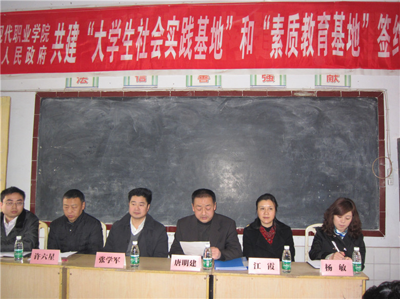 接着唐书记和吴乡长进行了合同签约,张常委、唐书记、吴乡长一起为“大学生社会实践基地”和“素质教育基地”揭牌,共建活动正式启航,会场爆发出热烈的掌声。