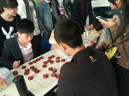 为了丰富同学们的课余生活,培养同学们对文化活动的热情,在校内营造文化氛围,加强同学之间的交流合作,给同学们一个自我展示的舞台,2015年4月四川华新现代职业学院举行第四届社团文化节,本社举行第一届棋王争霸赛。