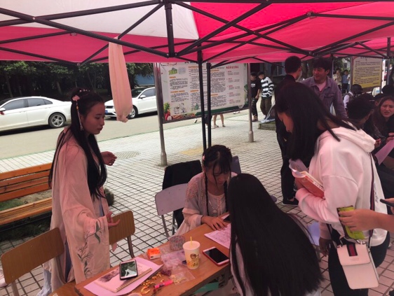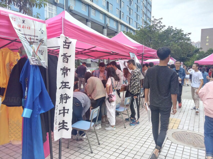 社团在吸引新同学的同时也不忘记结合自身的优势来宣传各自的特色摄影社:将所有的美好与景色记录那一瞬间,让它不会随着时间消失,永远的成为一道回忆汉服社:那种古典的美丽萦绕心头,汉服文化总能想起一首首古诗,其中有句能很好的形容她们:轻罗小扇白兰花,纤腰玉带舞天纱,疑是仙女下凡来,回眸一笑胜星华。动漫社,他们有着属于自己的文化底蕴,和美丽的汉服有着异曲同工之妙,最吸人眼球的就是cosplay,深受广大学生喜爱,cosplay 全称costume player (角色扮演),这也是动漫社的一大特点。棋奕社,弈棋是高度的脑力运动,可以锻炼学生的思维能力和记忆计算能力.