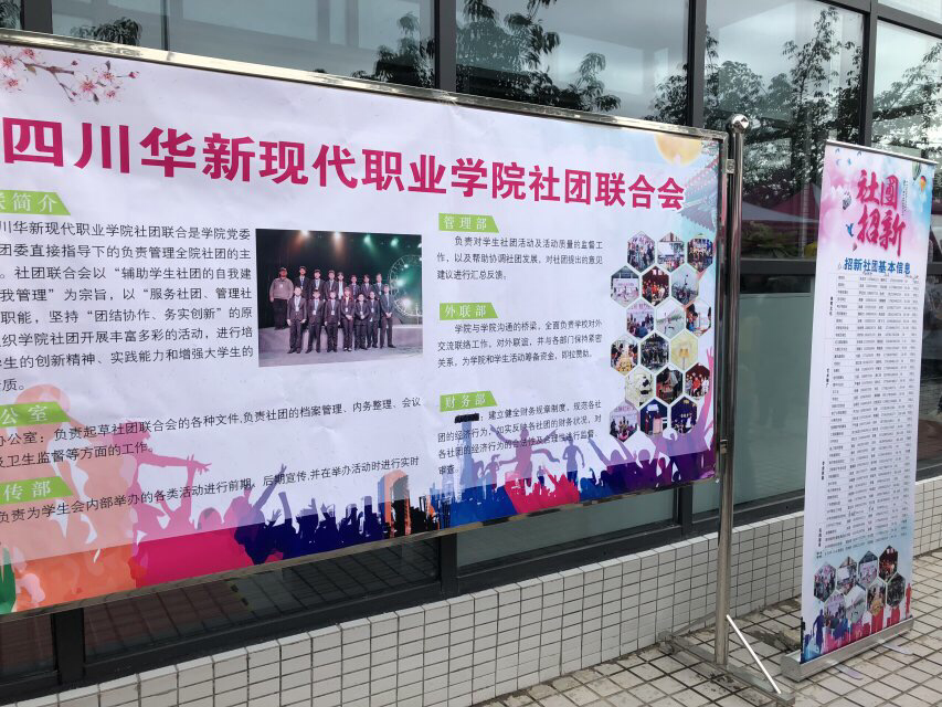 2018年9月26日上午10点,我院展开了一年一度如火如荼的社团招新活动,场面可谓是百团大战,热情洋溢的华新学子把道路装点的生气勃勃,五彩斑斓的横幅海报相互争艳,各式各样的精彩的才能展示,吸引着新同学们的目光。