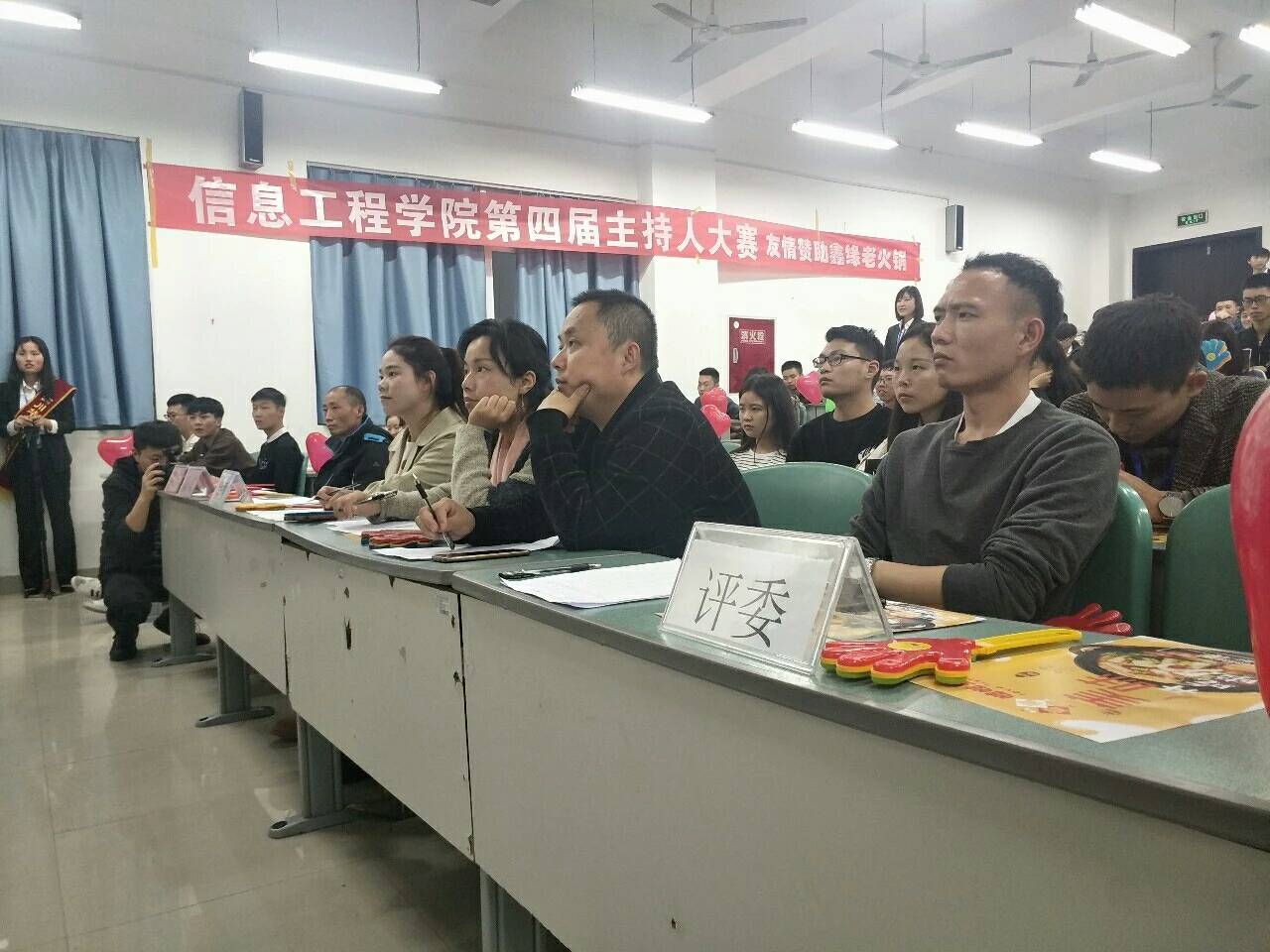 为展现当代大学生的精神面貌,张扬青春风采,信息工程学院于10月25日下午6点在教学楼105举行了“主我风采、驰骋舞台”主持人风采大赛。学院党支部书记李凡老师、副书记张启才老师、各班辅导员、以及学生干部等120余人参加了本次活动。