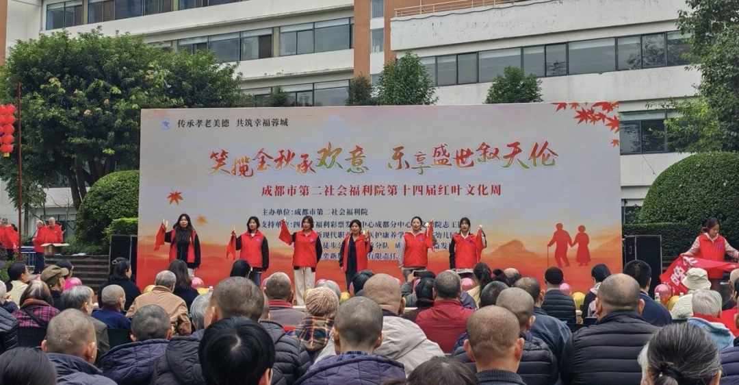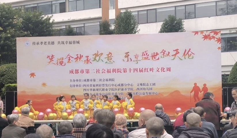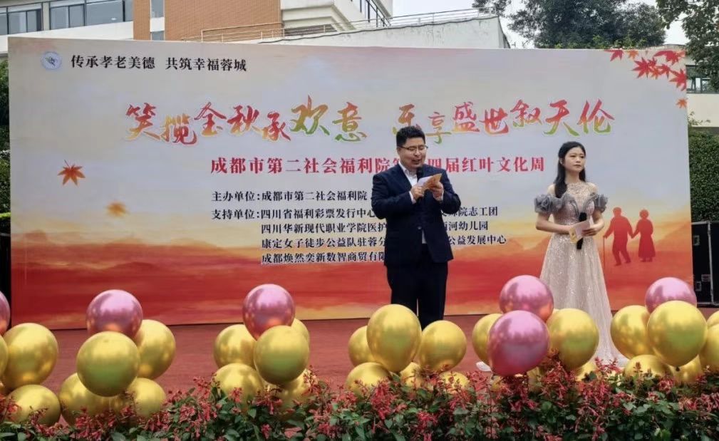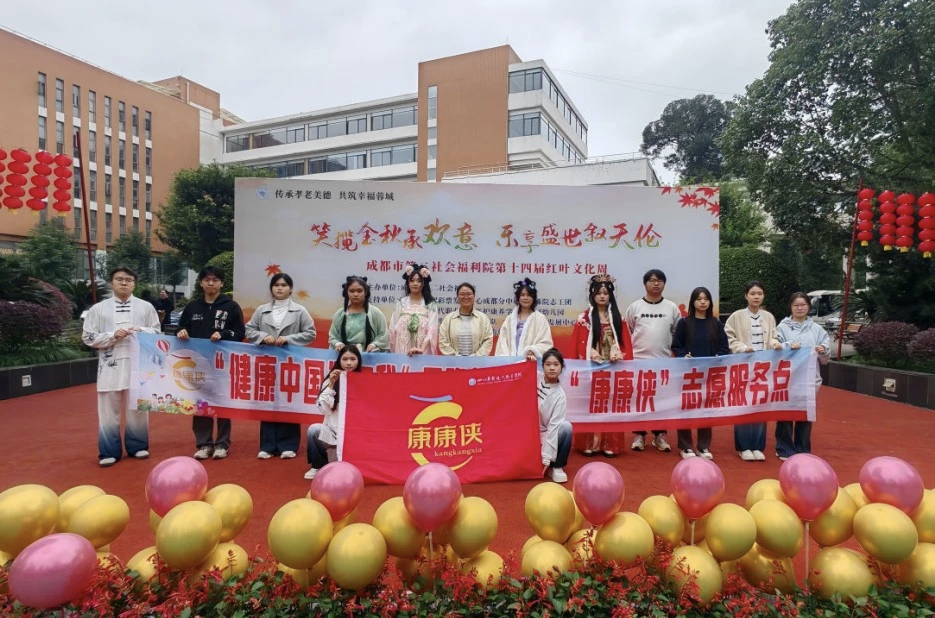 2025年10月29日上午,由成都市第二社会福利院主办的第十四届红叶文化节在院内温情启幕。四川华新现代职业学院医护康养学院康复治疗技术专业“康康侠”社团康养先锋队携兄弟社团文澜汉文化社与西河幼儿园、文殊志愿团、康定女子徒步公益队驻蓉分队、成都乐聆公益发展中心等支持单位共同努力,为老年朋友们倾情呈现了一场融合专业康养、文化艺术与公益温情的视听盛宴。其中,医护康养学院康复治疗技术专业的同学们开创了“专业守护”与“艺术滋养”相结合的特色康养模式。他们与长期坚守的“康康侠”社团,已成为福利院一道温暖的风景线,赢得了杜润涛院长的高度认可与赞扬。
