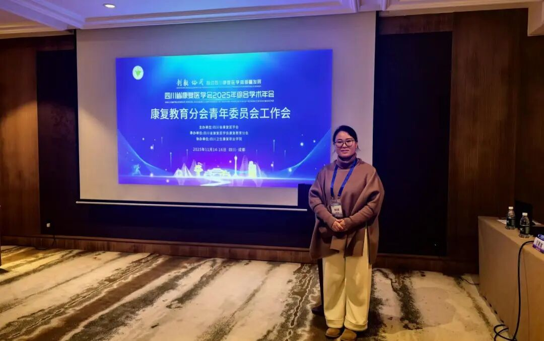 本次年会汇聚了省内外康复医学领域的众多知名专家、学者和一线从业者,围绕康复医疗技术的新进展、临床实践、人才培养及产业融合等议题展开了深入探讨与交流。我院指导老师杨立军作为四川省康复医学会康复教育分会青年委员,全程参与了委员会的内部会议 ,与同行就康复教育的前沿理念、课程改革及人才培养模式创新等话题进行了广泛交流,进一步提升了我院在省内康复教育领域的影响力。