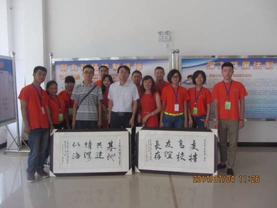 7 月4日,我院2014年暑期三下乡关爱留守儿童社会实践队一行10人在团委书记杨敏的带领下,如期抵达了遂宁大英智水乡开展暑期社会实践活动,智水乡党委书记、乡长热情接待了我们。