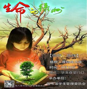 9月10日中午12点由学院图书馆主办,图书馆学生管理委员会承办的主题为“地球,你好”的植物保卫战活动在学生食堂门口开展。本次活动的开展的意义重在呼吁大家保护环境,爱护校园的每一寸生命,不要去践踏生命,并以此促进同学们的环境保护意识。