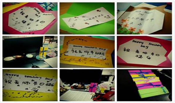在这次活动中,我院青年志愿者们拿着自己亲手DIY的贺卡,带着真诚的祝福,走到老师们面前,高兴的说:“老师,祝您教师节快乐!”并表示最崇高的敬意!让我们对所有的老师们,深深地鞠上一躬,道一声:“老师,您辛苦了!”