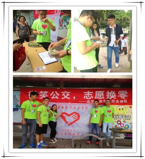 在今天下午的活动中,陆续有乘客在站点找我系志愿者换零钱,我们的志愿者也对此报以微笑,并帮助乘客。此次活动,我系大一的青年志愿者尤为积极努力,成为我系志愿者的好榜样。