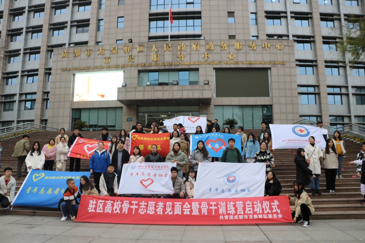 2019年11月30日下午14:00在龙泉驿区青少年活动中心二楼桃源剧场会议室进行了成都市共青团龙泉驿区委员会主办的驻区高校青年志愿者见面会暨青年志愿者骨干训练营启动仪式。参加本次会议的高校有:四川华新现代职业学院、四川城市职业学院、成都信息工程大学、四川旅游学院、四川航天职业技术学院、四川财经学院、四川长江职业学院、四川护理职业学院和成都中医药大学这9所高校。