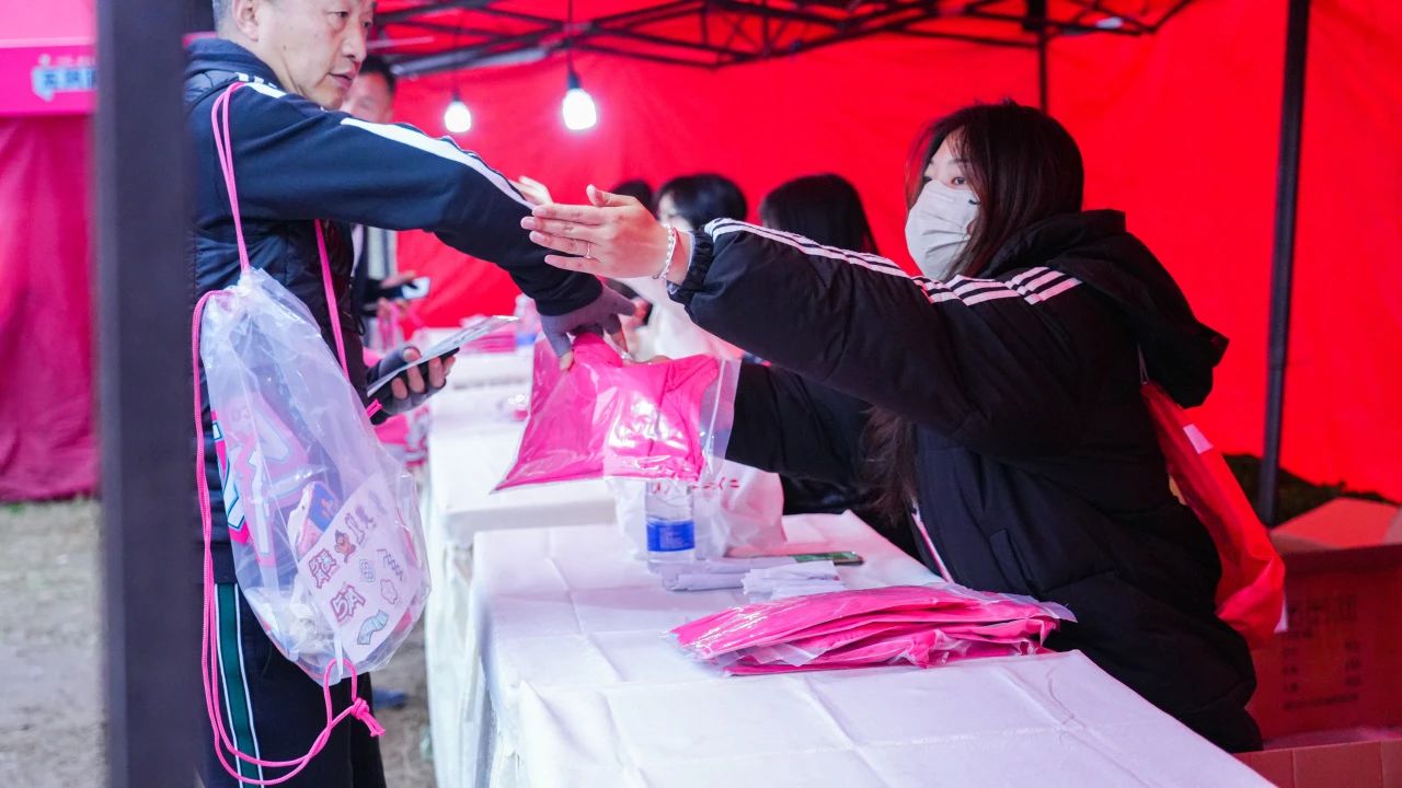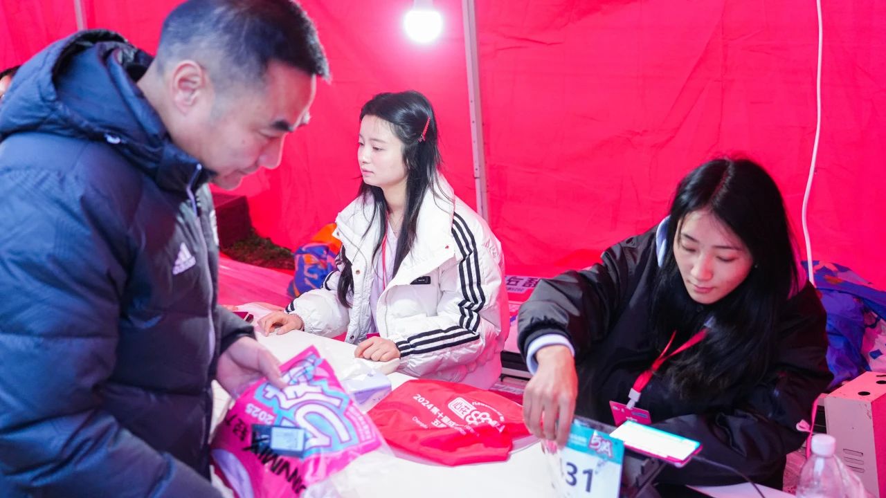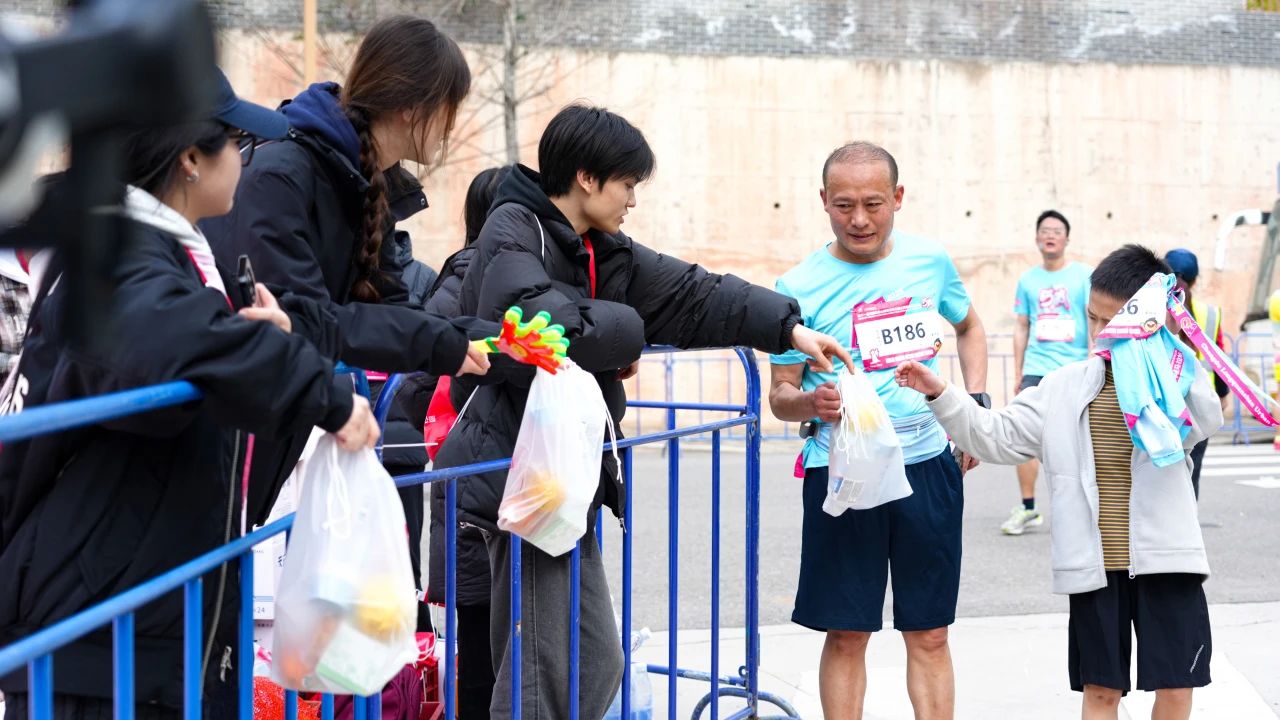 除了为选手服务,志愿者们还承担起了维护赛道秩序的重要任务。他们时刻关注着赛道情况,提醒观众不要越过隔离线,确保比赛的顺利进行。随着完赛选手人数的增加,后场的工作量也逐渐加大。志愿者们始终保持着高度的专注,确保每一位选手都能及时领取到奖牌和赛后奖品。