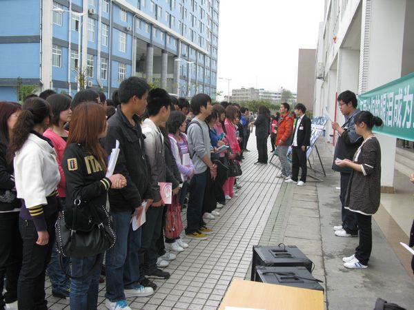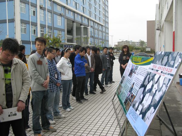 活动开始,学生会主席陈亮首先宣读了活动倡议书,在介绍了今年西南大旱的情况后,号召全院师生一起行动起来,为环保出一份力。接着学院团委书记杨老师代表院团委倡导当代大学生以身垂范、互相监督、节约用水、节约用电,与环保同行,时刻让自己有低碳概念,共同保护我们的家园。最后,在同学们高涨的激情中四川华新现代职业学院“与环保同行与灾难抗争”活动正式启动!全院师生都积极参与此次活动。